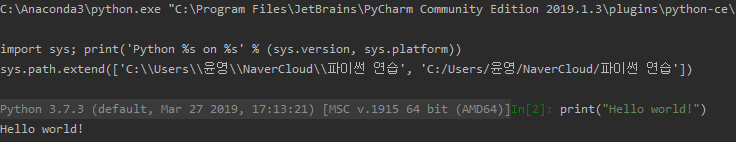 이와 같이 파이참을 이용해 대화형 인터프리터와 코드 편집기형 인터프리터에서 코드를 작성하고 실행시키는 방법을 배워보았습니다. 대화형 인터프리터는 enter를 통해 그 결과를 바로 다음 줄에서 출력할 수 있었지만 이 경우 긴 소스 코드를 작성하기 어려울 것이라고 직관적으로 이해할 수 있습니다. 복잡한 동작을 갖는 프로그램은 코드 편집기형 인터프리터에서 그 소스 코드를 작성하여 코드 전체를 작동시킴으로써 그 결과를 확인할 수 있습니다. 따라서 조금은 귀찮더라도 코드 편집기형 인터프리터를 이용하여 파이썬 학습/개발을 진행해보도록 하겠습니다.