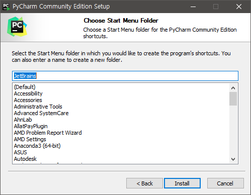 설치를 마친 뒤에는 Pycharm을 설치해보도록 합시다.