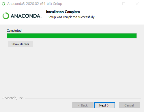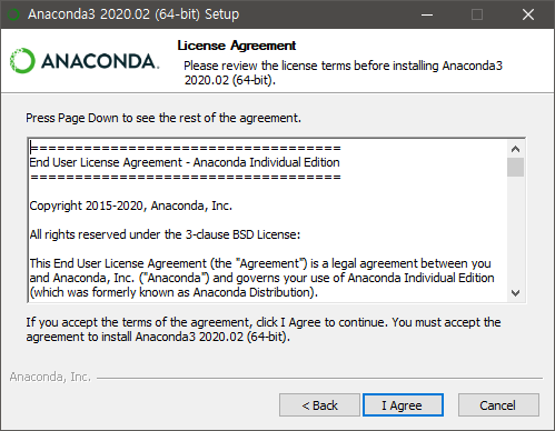 Just Me를 선택할 경우 현재 os(필자는 윈도우를 사용 중입니다.)에 접속된 계정 내 설치가 됩니다. (설치 경로: C\users\사용자이름\Anaconda3)
