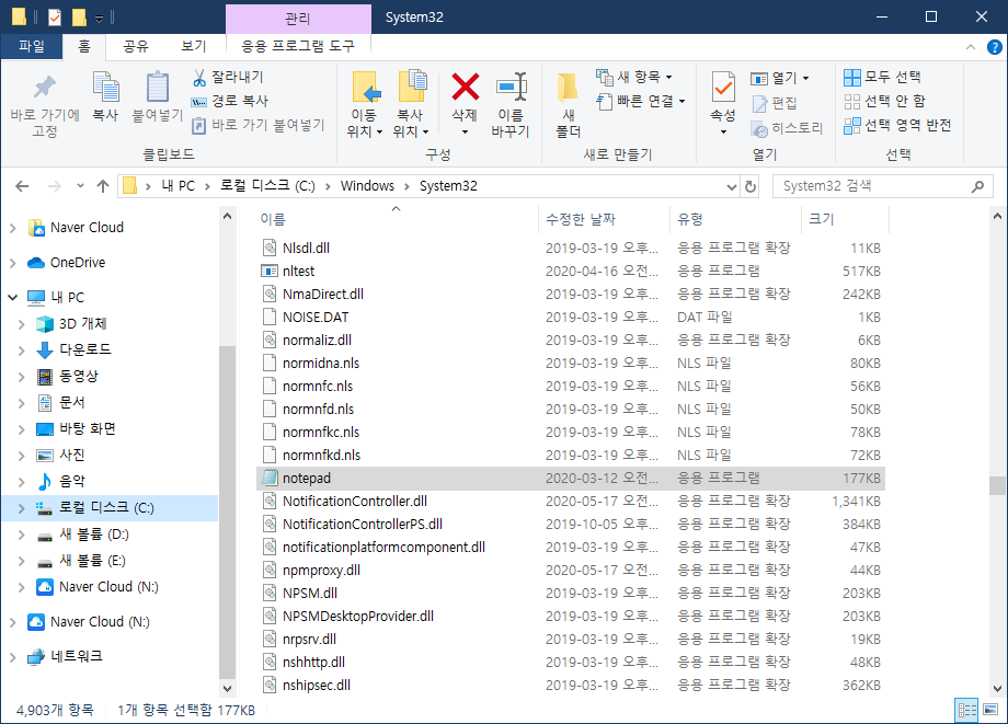 즉, C:\windows\system32 폴더 내 notepad 파일을 찾고 실행합니다.