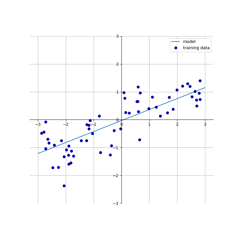 mglearn.plots.plot_linear_regression_wave() plt.show() |