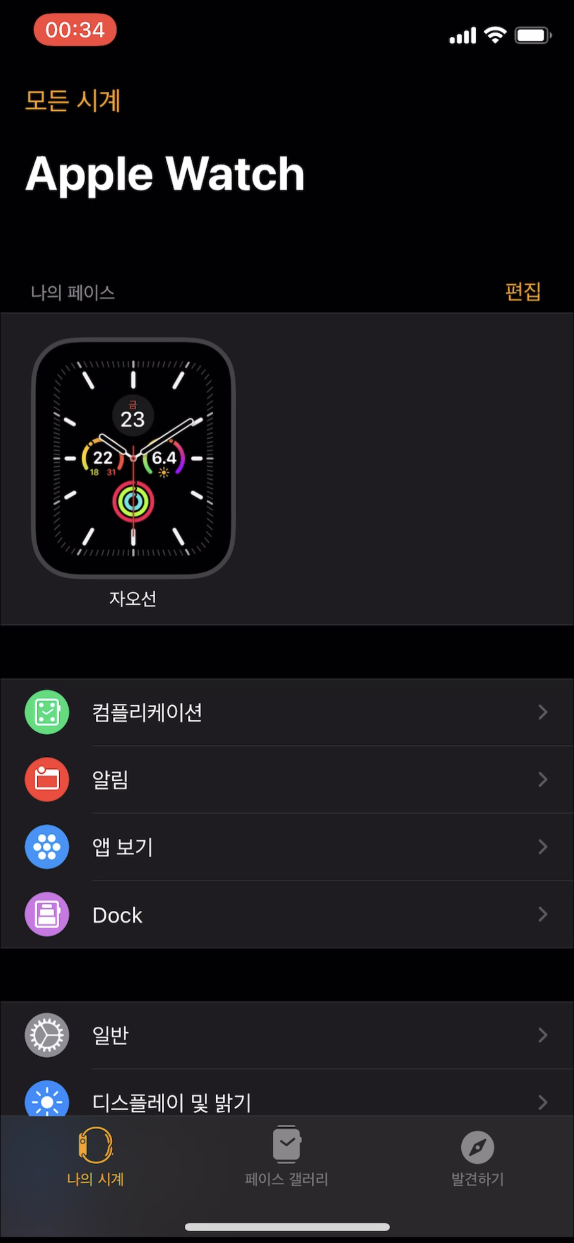 애플워치를 설정하는데 굉장히 오랜 시간이 걸렸습니다. 워치 OS를 7.2 버전으로 업데이트해야하기도 하고, 필요한 앱들도 다운받다보니 한 시간은 훌쩍 지나갑니다.