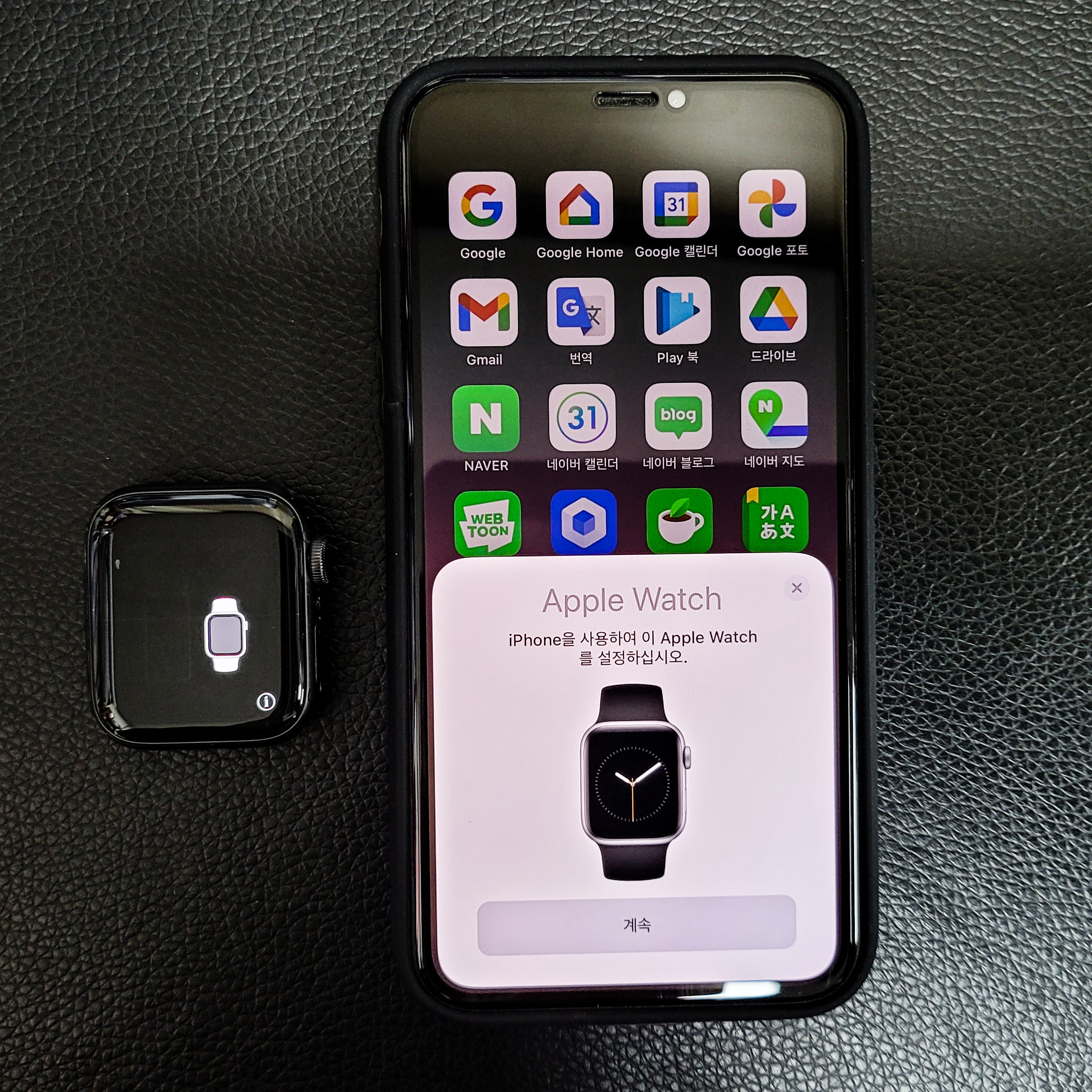 애플워치를 처음 설정하는데 시간이 매우 오래 걸렸습니다. 설정하는 동안 스트랩도 한 번 뜯어봤습니다.