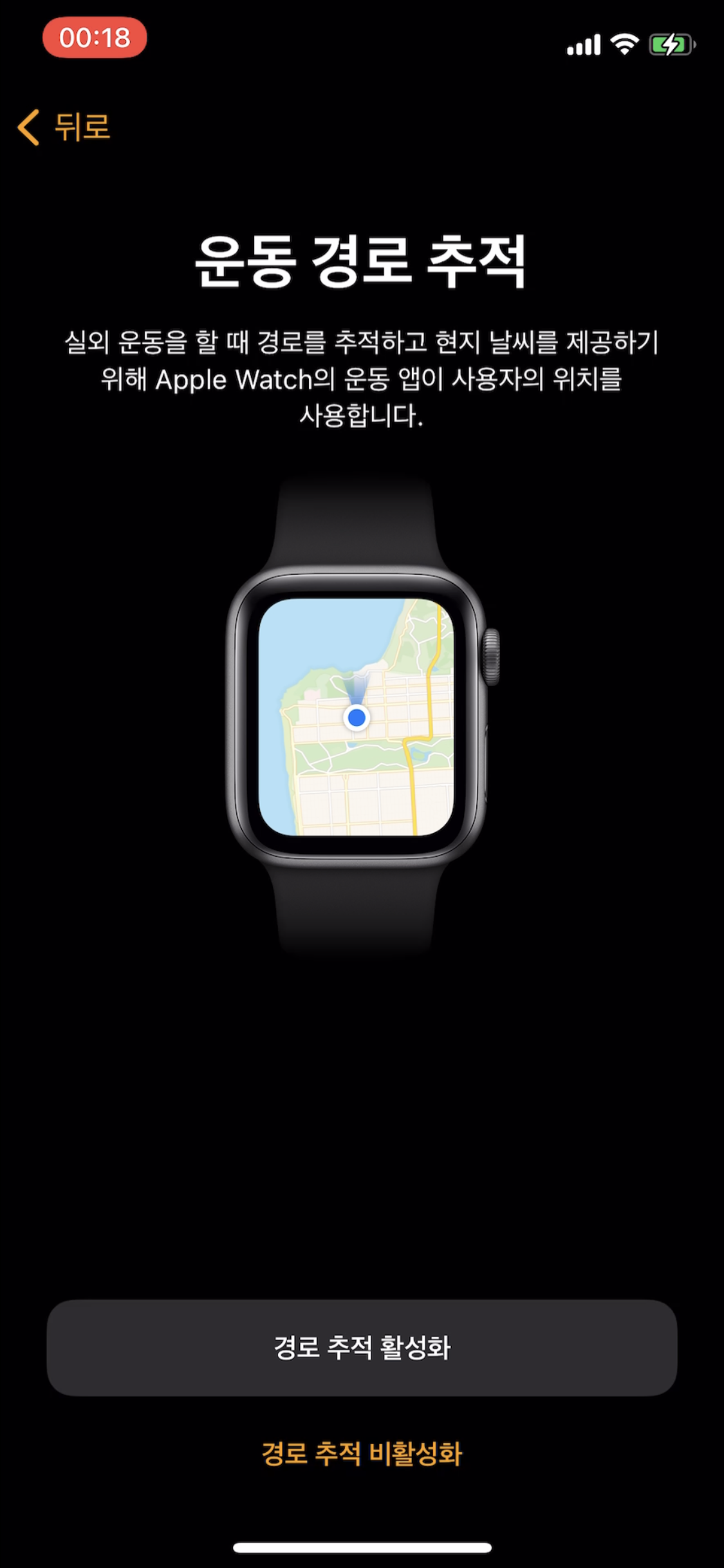 코로나 이전에는 종종 산책이나 런닝을 즐기던 편이라 운동 경로 추적을 활성화시켰습니다.