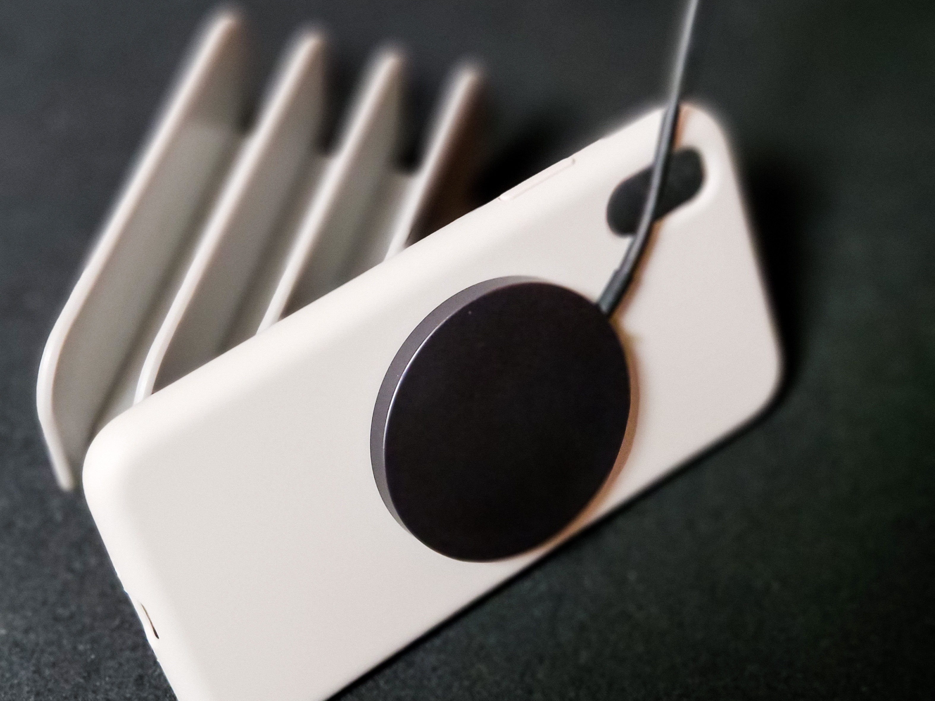 따라서 맥세이프 자석 스티커를 케이스의 중앙에 위치시킨 뒤(이때 자석의 앞뒤를 잘 확인해야 합니다. 맥세이프 충전기와 정확하게 맞는 극이 케이스 쪽을 향하도록 조정합니다.) 간단히 부착 및 충전 테스트를 해보았습니다.