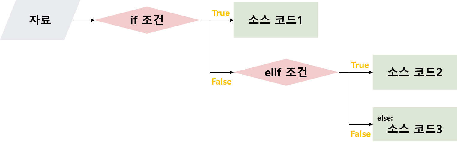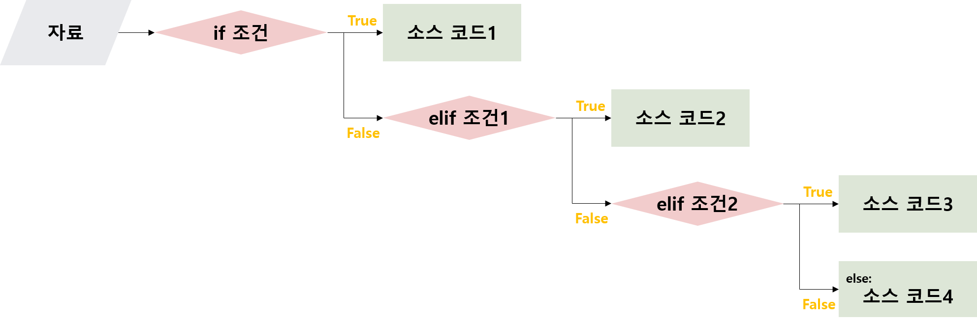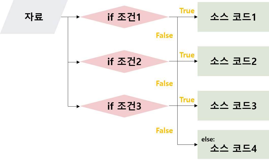 테스트하고자 하는 조건이 여러 개일 경우 elif를 추가로 사용합니다.